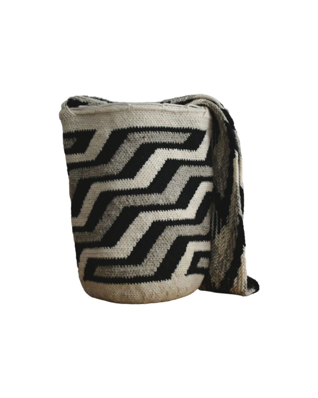 Mochila de lana tejida a mano por artesanos de la comunidad Kankuama en la Sierra Nevada de Santa Marta. Tamaño pequeño perfecto para llevar tus elementos esenciales y usar de día o noche.